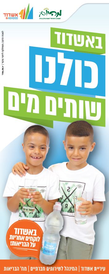 כחלק ממהפיכת הבריאות באשדוד, מחלקת הבריאות שוקדת על קמפיין מים שנועד לעודד את התושבים לצרוך יותר מים ופחות שתייה מתוקה.