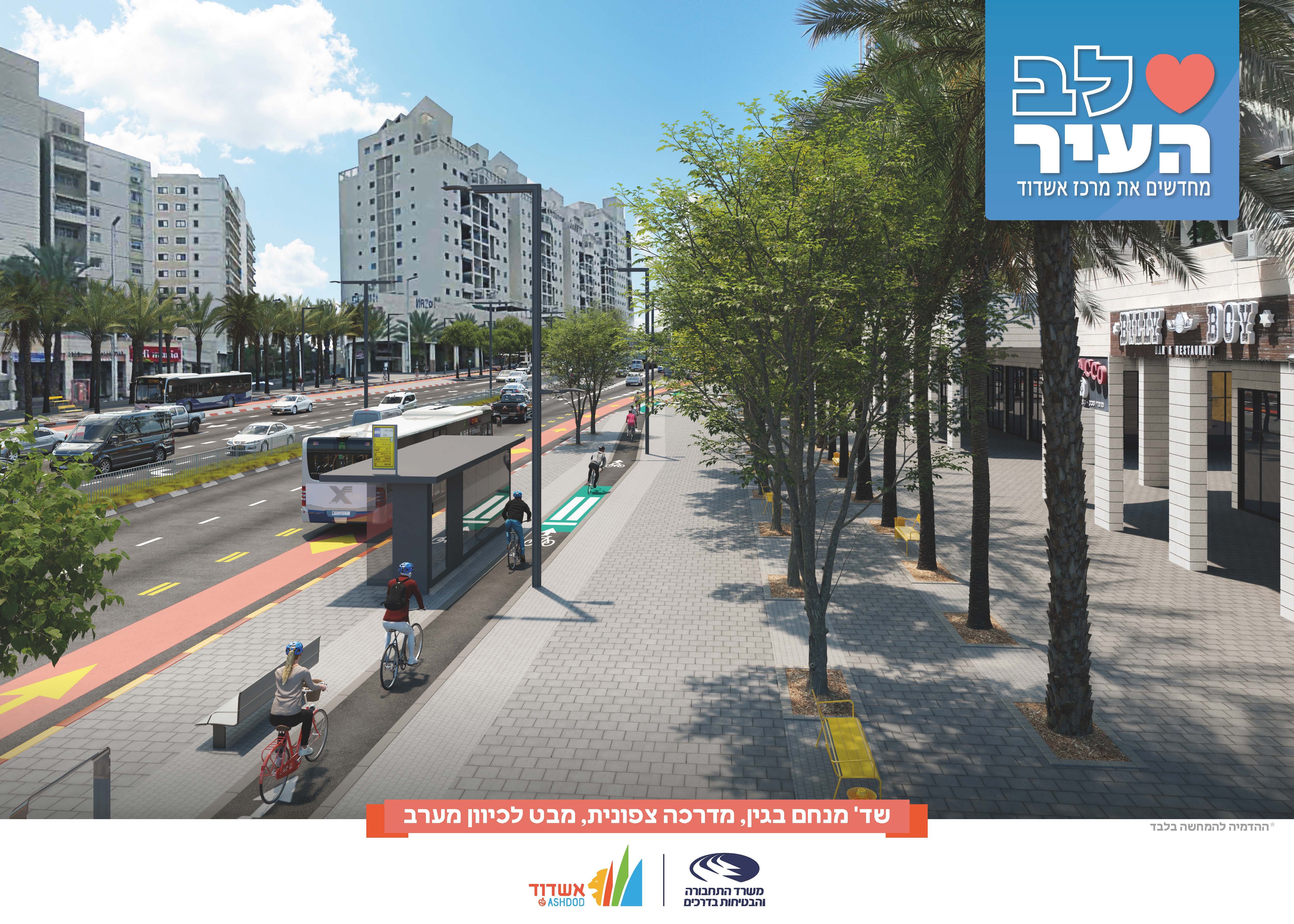 עיריית אשדוד ומשרד התחבורה ממשיכים לקדם את חזון ההתחדשות העירונית במרכז העיר, עם תחילתו של פרויקט "לב העיר" — מיזם נרחב לשדרוג וחידוש כיכר רמון ודרך מנחם בגין, במקטע שבין שדרות הרצל לשדרות בני ברית. במסגרת העבודות יעבור המרחב הציבורי שינוי משמעותי: חידוש תשתיות המים והביוב, שיקום המדרכות והקולונדות, הקמת שבילי אופניים ונתיבי תחבורה ציבורית, הצבת רמזורים חדשים והתקנת תאורה מודרנית לשיפור הבטיחות והנגישות להולכי רגל.