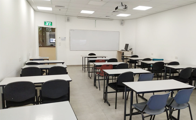 במקום יש - מקרן, לוח, שולחנות, כיסאות | עלות לשעה - 100 ש"ח + מע"מ
