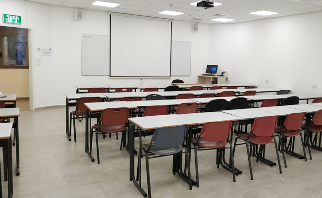 במקום יש - מקרן, לוח, שולחנות, כיסאות | עלות לשעה - 100 ש"ח + מע"מ